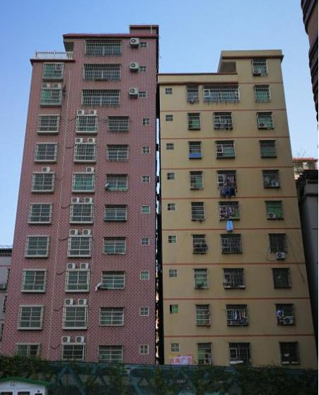 本工程位于湖北武汉某小区,因地基不均匀沉降,导致该楼产生超限倾斜,采用钢滑道截柱纠偏,使结构的倾斜率满足规范要求,顶升工期为1天。