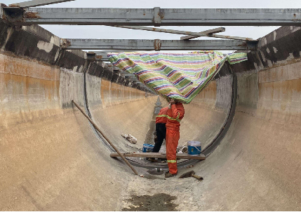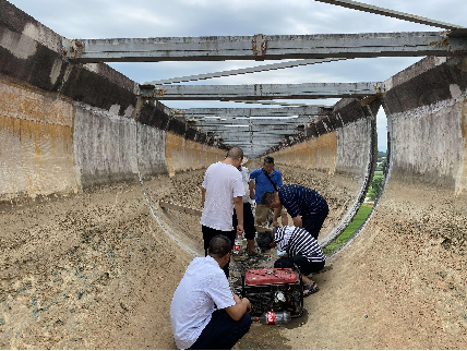 本工程于2023年实施,项目位于湖南省邵东市上沙江灌区左干渠佘田桥镇齐兴村,光洪渡槽的21#、63#排架基础变形导致渡槽结构存在安全问题、不能正常运行。在基础加固处理后,采用截柱纠偏的方法使其复位。