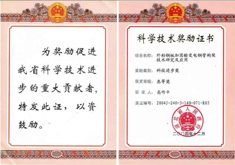 湖北省人民政府2004科技进步奖叁等奖