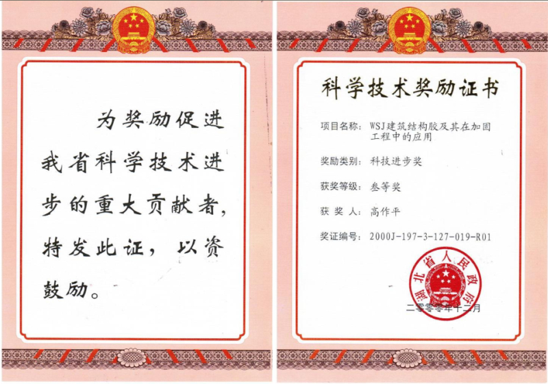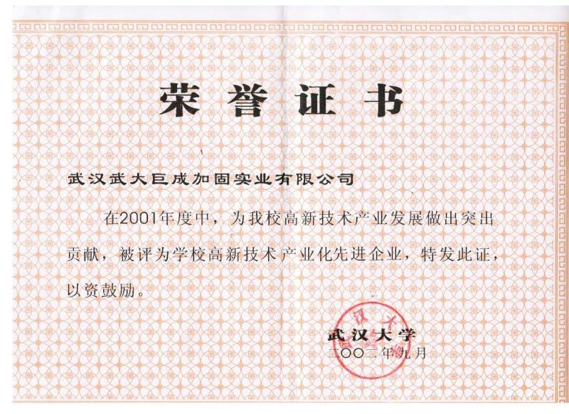 2002年度武汉大学“工程结构加固技术一等奖”