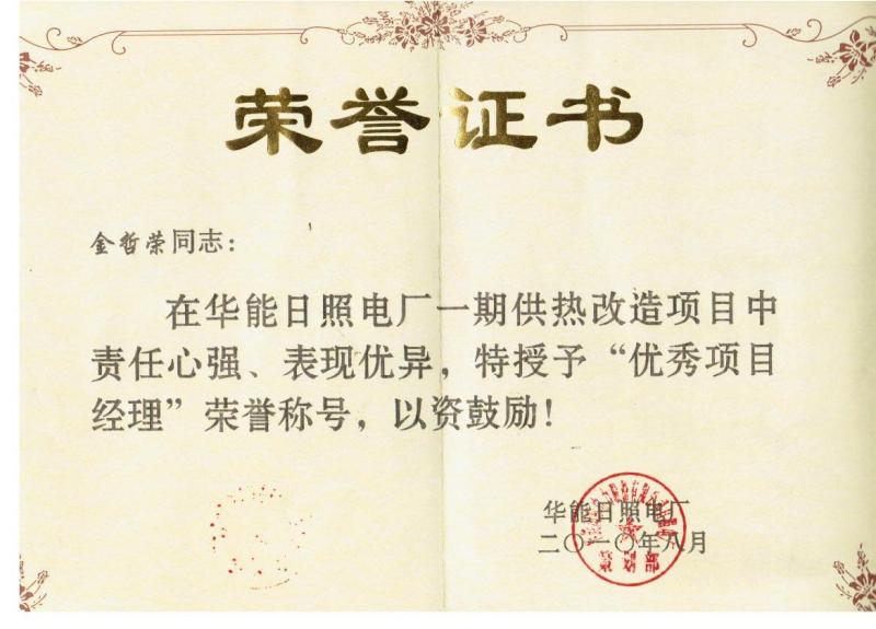 2010年北京京能热电“优秀项目经理”