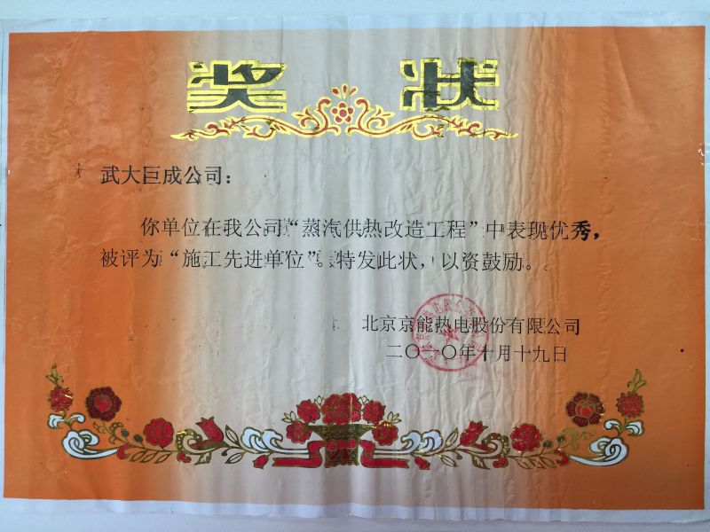 2010年北京京能热电“施工先进单位”