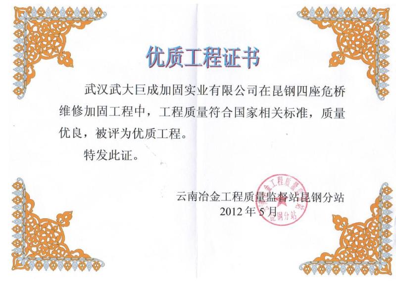 2012年云南冶金工程质量监督站“优质工程”