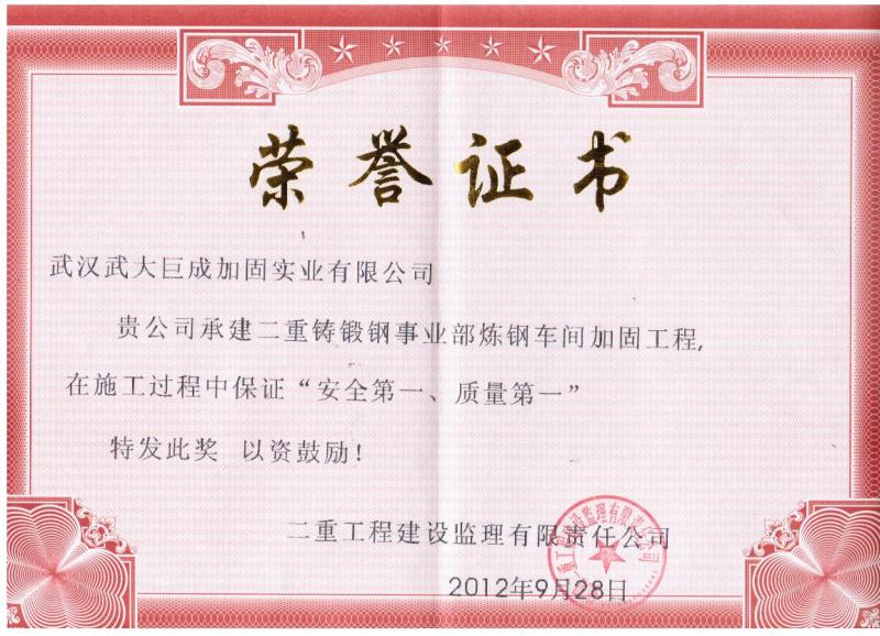 2012年二重建设监理有限公司“安全第一、质量第一”