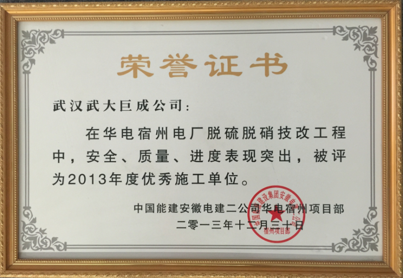 2013年中国能建“优秀施工单位”