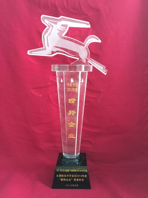 2013年武汉市东湖新技术开发区授予巨成“瞪羚企业”