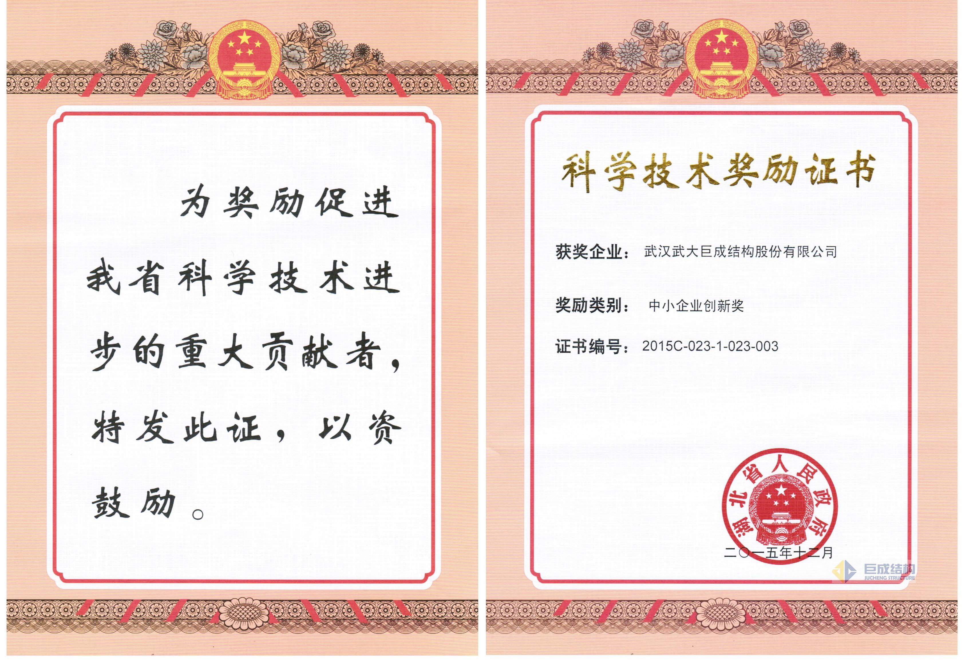湖北省人民政府2015年中小企业创新奖