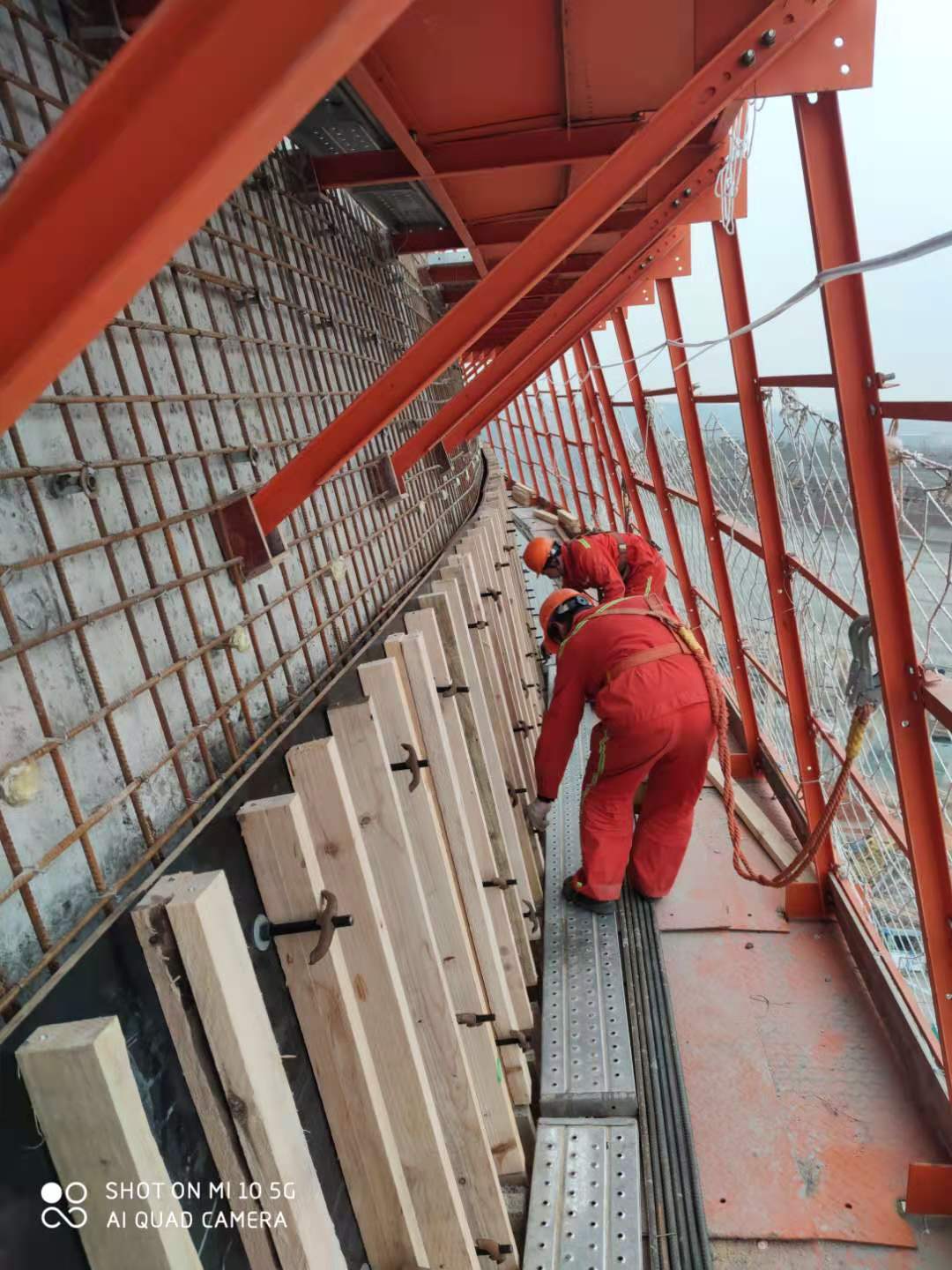有一次浇筑混凝土,班长张汉坤带领班组人员奋战至凌晨2点。虽然寒风呼呼地吹,大家又累又困,但是张班长以身作则,全体人员毫无怨言,直至顺利浇筑完成。工人郑武雄凭借过硬、全面的操作技能和良好的安全意识,在钢平台搭设方面表现优异。不论是操作登高车,还是在70多米的高空搭设钢平台,郑武雄始终冲在最前线,保质保量保安全地完成每一项任务,展现了一名合格施工人员的良好素质。