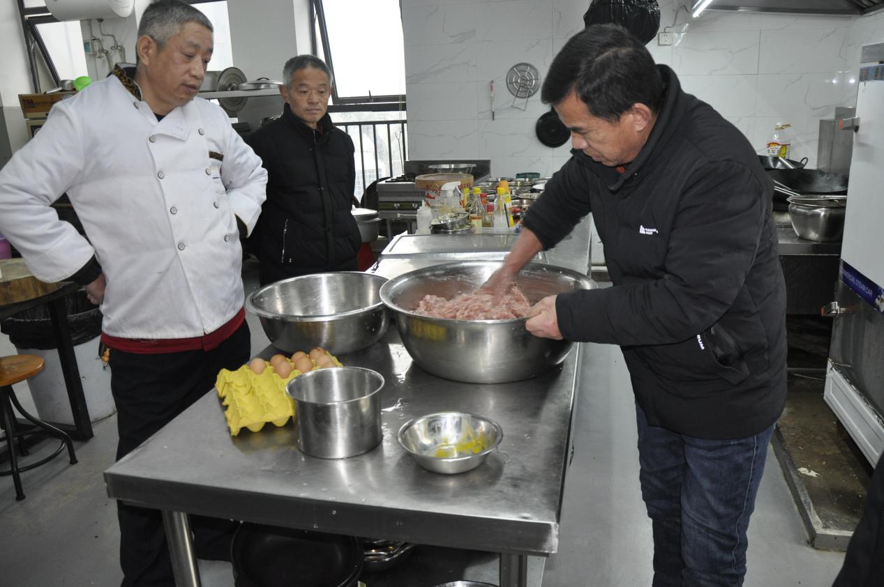 上午,管军章讲解了烹饪的主要流程、六个菜的烹饪方式和技巧及原材料、佐料、半成品、成品的正确保存,就怎样搞好工作区域内环境、设施、设备的清洁和安全,怎样控制成本、做好食品卫生与个人卫生等展开培训。针对在场人员提出的问题,管大厨作了通俗易懂、深入浅出的讲解。通过培训,大家对豆腐丸子、酸汤鱼丸、麻婆豆腐、红烧小尖圆、粉蒸肉、剁椒鱼头六个菜品的制作有了较为系统的了解,收获颇丰。