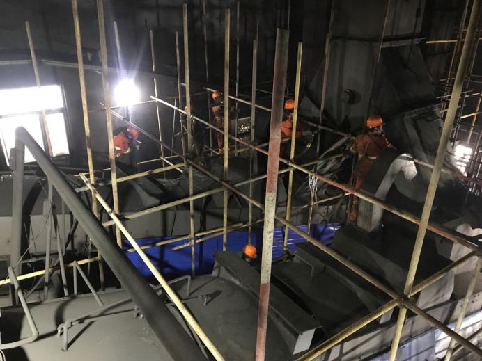 项目施工部位存在很多运行中的设备,包括运行的皮带、汽机、碎煤机等,安全风险高。为了消除安全隐患,项目部安排专人专班搭设钢管架,做好隔离防护,落实防火措施。工人师傅陈长豹、高作雄等凭借过硬的操作技能、良好的安全意识,始终冲在最前线,带领大家搭设钢管架。面对运行中的各种设备、管道管线等障碍物,大家吊装材料慎之又慎,传递钢管小心翼翼,搭设钢管认认真真,确保不碰坏、不砸坏、不坠物,不发生任何安全事故,安全高效地推进施工。