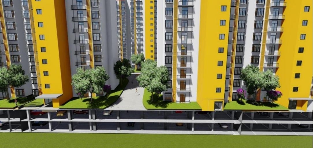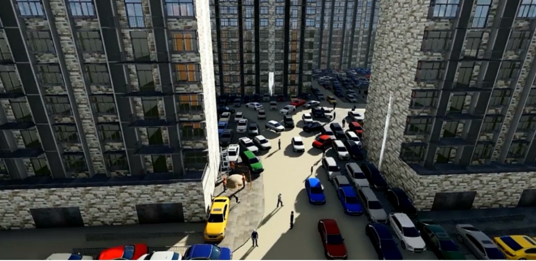 目前,我国正大力推行城市老旧小区综合改造,但现有的改造方式几乎都不涉及结构改造,仅仅针对绿化、水暖电、外立面等进行翻新改造,也有对结构影响甚微的加装电梯,这种改造方式没有从根本上解决老旧小区的功能问题,即老旧小区停车难、无公共活动中心等问题。将钢滑道顶升技术方法应用在老旧小区整体改造中,将老旧小区各栋建筑物整体顶升1层或2层,再用框架将各栋连成整体,这样原建筑物群就整体向上抬升了一层或两层,下部形成了一个大空间;下部空间可以安排大量的停车位,还可以设置社区养老院、幼儿园、托儿所、公共洗手间等。上部平台可以布置园林景观,顶升施工期间,可以在柱底安装隔震垫,提高抗震性能,还可以安装电梯,修复旧楼的防水与外观。这样,一个老旧的小区就被改造成为一个现代化的小区。图1为厦门湖里区某社区顶升增层综合改造方案。