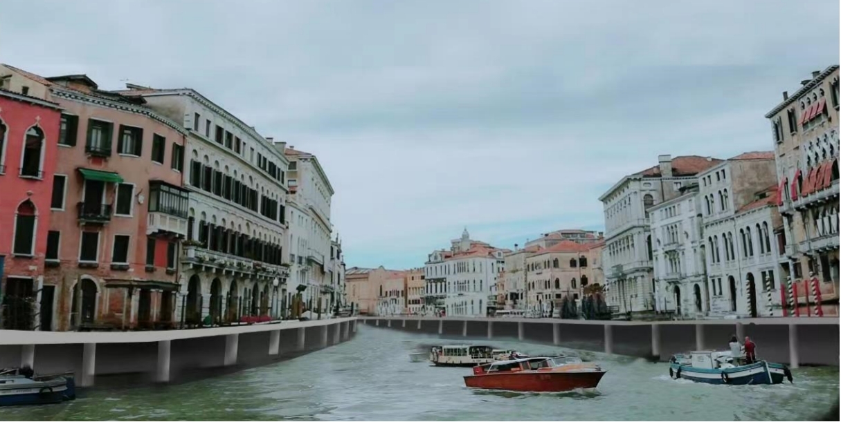 基于此,利用钢滑道顶升技术还可能使像威尼斯水城等国际国内濒临淹没的重要城镇通过顶升得到保护。如图3为威尼斯水城整体顶升改造方案效果。