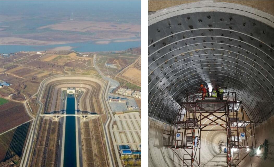 穿黄工程位于河南省郑州市黄河上游约30km处,线路总19.30km,主体工程中最引人瞩目的也是难度最大的穿黄隧洞,单洞长4250m,隧洞采用双层衬砌,外衬为预制钢筋混凝土管片,内径7.9m,内衬为现浇预应力钢筋混凝土,成洞内径为7.0m。隧洞为双洞平行布置,中心线间距为28m。穿黄隧洞最大埋深35m,最小埋深23m;断面最大水压为4.5MPa。南水北调中线工程2014年12月12日正式通水,至2019年已运行5年,考虑到穿黄隧洞的重要性,并在保证中线干线工程正常通水的情况下,在当年冬季输水量较小时开展单洞停水检查维护工作。
