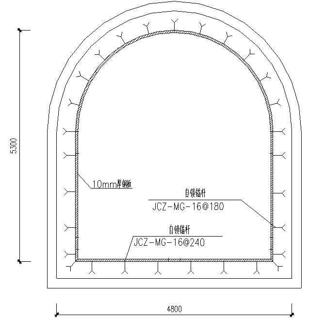 隧洞加固方案采用内衬钢板加固。钢板与管片采用自锁锚杆进行锚固。