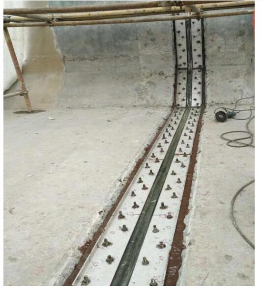 本次隧洞检修主要是对隧洞衬砌环向断⾯采⽤内贴钢板⽅式进⾏加固补强,该处理⽅式均采⽤⾃锁锚杆替代化学植筋进⾏后锚固,解决了输⽔隧洞结构在⻓期泡⽔、潮湿环境下运⾏耐久性的技术问题。