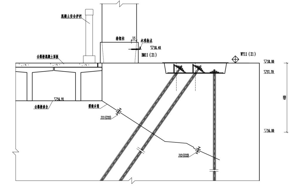 加固方案采用在闸墩内新增扩孔自锁锚杆替代原扇形钢筋:裂缝修补后,自锁锚杆穿过裂缝区域,在可靠位置锚固后,施加预应力。自锁锚杆安装后其使用寿命与原结构相同。施加预应力后控制裂缝张开,确保结构安全性和耐久性。