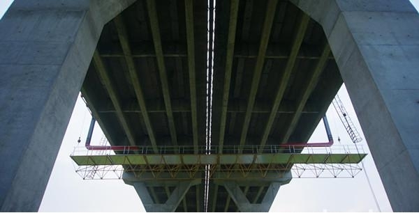 本工程于2007年施工。荆州长江公路大桥1998年3月开建,2002年10月通车,双塔斜拉桥,主桥段长4178米。经过多年运行出现一些病害,巨成2017年承接桥梁维护工程,主要施工内容为裂缝处理、支座更换、缺陷修补等。应用巨成不封道桥梁检修架车,不影响交通的情况下完成施工任务,社会经济价值显著。