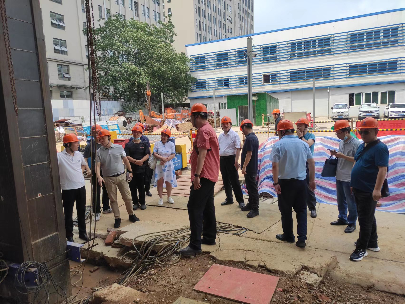 杨德斌董事长一行参观了巨成群控同步顶升工程试验项目现场,武汉代表处主任龙舟介绍了顶升试验的背景、目的和群控同步顶升大型数控设备以及顶升应用前景。双方对钢滑道顶升技术和应用场景展开了深入的讨论和交流,大家一致认为巨成群控同步顶升技术能够在城市更新、老旧小区改造等领域发挥重大作用。
