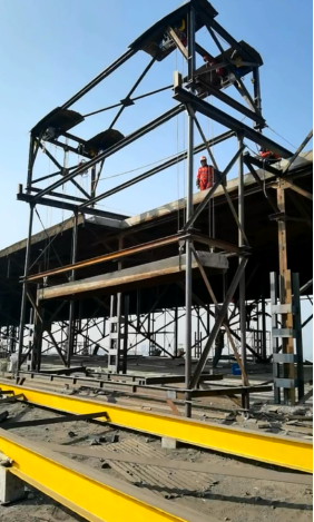 天窗架天沟板拆除吊装 钢滑道上、下托盘的安装