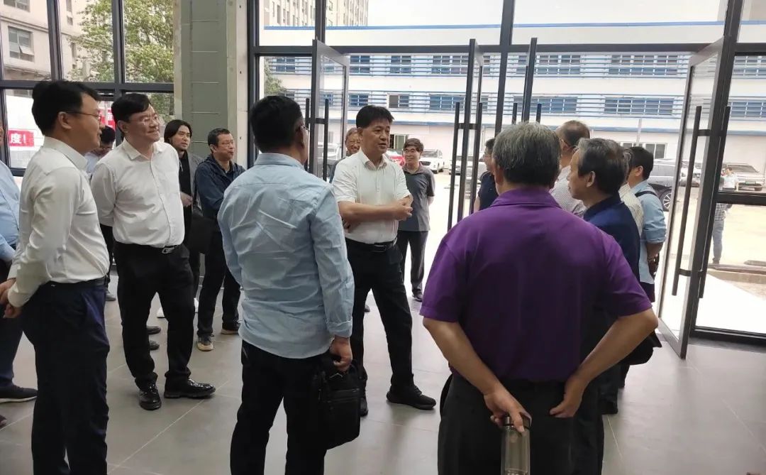 随后参访团回到巨成科技园,巨成董事长高作平教授带领大家参观了钢滑道同步顶升工程试验原址展,向大家介绍了钢滑道同步顶升试验的相关内容,并就应用场景和工程情况与来宾们进行了交流。此项技术能够在老旧小区改造、工业建构筑物改造等领域发挥重大作用。